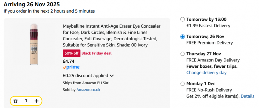 The Maybelline Instant Anti Age Eraser Eye Concealer is a bestseller and that's because it works wonders. If you want to try it for yourself then now is the time to grab it from Amazon. It's been reduced at Amazon as part of their Black Friday Week Deals, if you subscribe and save you can get it from only £4.74! It's selling for £9.99 elsewhere.