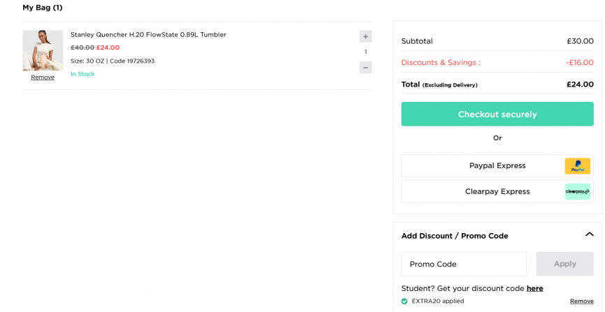 - Stanley Quencher H.20 FlowState 0.89L Tumbler*now £24 using code (was £40)