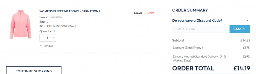 Planning on purchasing something from Trespass? Well you're in luck, they are giving us 25% off everything for Black Friday! Just use the discount code BLACKFRIDAY at the checkout to get your discount. The best part is this discount code even works on their up to 70% off sale, double discount!
