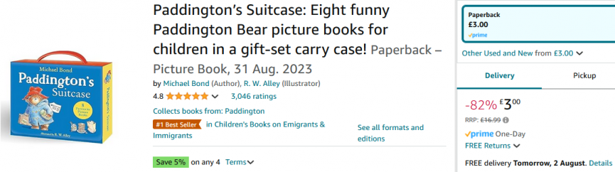 This is such a great offer for little bookworms, as we have found this Paddington’s Suitcase 8 Book Collection for just £3 at Amazon! This is price matching the Argos* clearance price, with free Prime delivery available too!