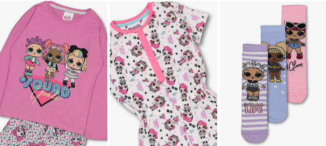 Character.com* certainly don't disappoint with their collection of L.O.L Surprise! clothing. There's plenty to choose from and they are reasonable prices too. Keep an eye out for their awesome sales where most items start from just 95p.