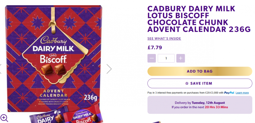 New for 2025! The great taste of Cadbury Dairy Milk now with Lotus Biscoff. This is a cracking price at £7.79 too, especially for a new advent calendar.