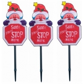 The Christmas 'Santa Stop Here' Light Up Sign is mains operated and comes with an AC-DC Adaptor. The transformer must be kept indoors but the sign can be stabbed into your grass or flower bed with the stake.