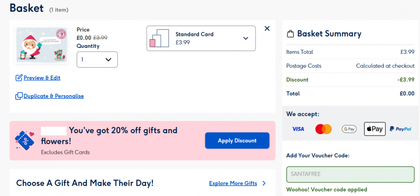Then make sure you add the regular size to your basket, it should be £3.99. Just enter the discount code SANTAFREE at the checkout and watch the price turn to £0.00!