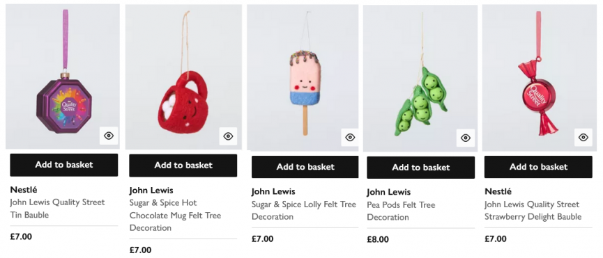 These Christmas tree decorations are selling fast, with some more popular designs already out of stock. There's even Quality Street hanging decorations! Don't hang around if you want to get your hands on them!
