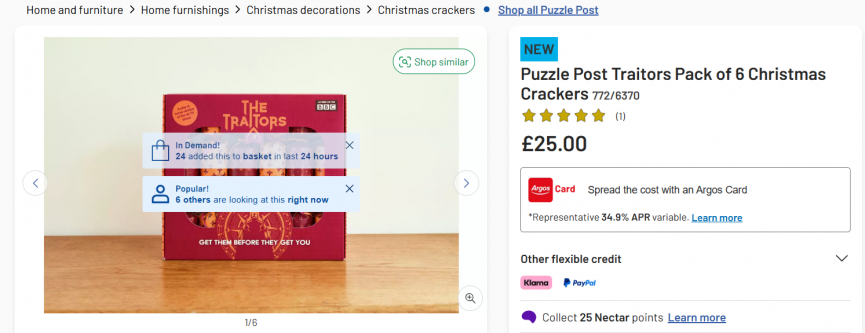 If you're a fan of the BBC show The Traitors then these Christmas crackers are a must have for your festive table this year, a cracker and a game in one! They are selling out everywhere this year thanks to the success of Celebrity Traitors but we have found them in stock at Argos for £25. Move fast for these!