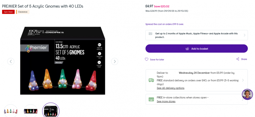 I know Christmas is only a few days away but now is the time to grab a bargain on Christmas decorations to stash by for next year! We just spotted this Premier Set of 5 LED Christmas Acrylic Gnomes down to only £4.97 from £24.99 in the Currys clearance!