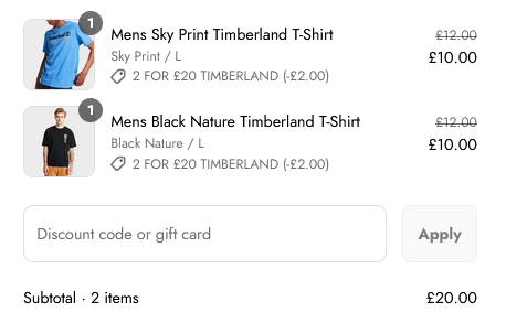 2 For £20 Timberland T-Shirts