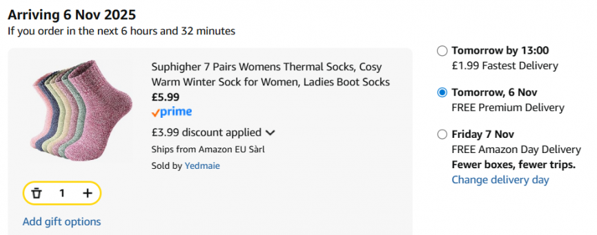 Home delivery is free when you spend £35 or if you have Amazon prime.