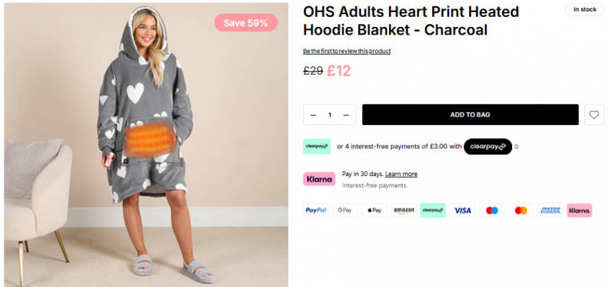 If you feel the cold and are worried about your heating bills this winter we may have found something to help - the Electric Heated Oversized Hoodie Blanket. It's a gorgeous heart print and has just had a nice price drop at Online Home Shop to only £12 instead of £29!