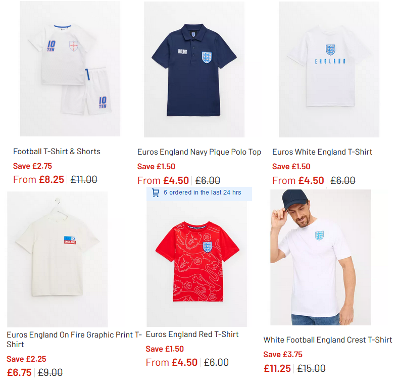 Here's a few of the England clothing we found, perfect for the Euros 2024 tournament next month. There's currently 25% off and the price you see has already been reduced for you.