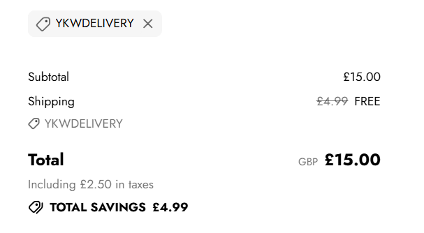 Home delivery is free with the discount code YKWDELIVERY instead of £4.99.