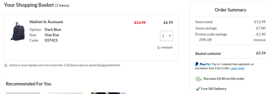 This rucksack is normally £13.99 but it is down to £6.99 in the sale at Mountain Warehouse. However add the discount code MW007 at the checkout and you will get an extra 20% off that sale price. Making it just £5.59! There's also free delivery too!