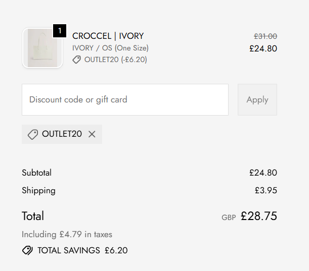 Ted Baker tote bags always make lovely gifts and we've just found a bargain one in the Ted Baker sale. I've just snapped up this Ted Baker Ivory Croc Textured Tote Bag to give my Mother in Law for Mother's Day. It was originally £45 but I just paid £24.80 with the discount code OUTLET20!
