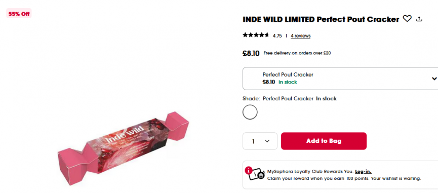 This is a nice little bargain to tuck away for Christmas, I've just ordered one for my daughter who is skincare and make up obsessed! Sephora have 55% off this Inde Wild Limited Perfect Pout Cracker making it just £8.10 now, this is an expensive brand so snap it up while you can.