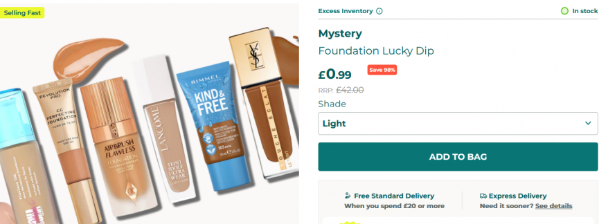 Introducing the Mystery Foundation Lucky Dip! Each purchase guarantees one handpicked foundation or concealer from a vast collection of esteemed brands.