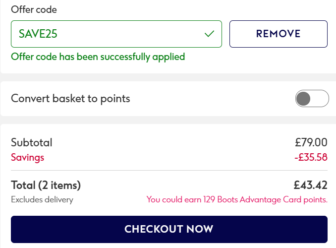 To get the 25% off all you need to do is add the discount code SAVE25 at the checkout. There's no code needed for the other spend and save offer, this is automatically applied to your basket when you spend £50 or £70.