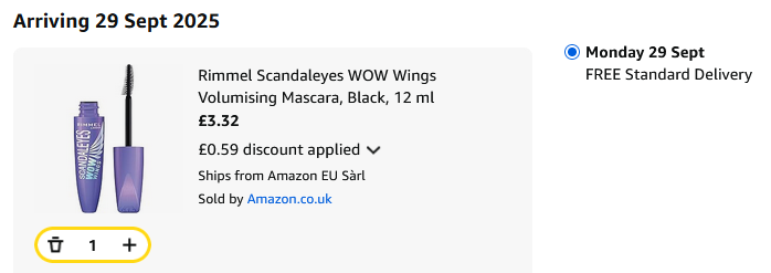 This is a bargain if you regularly use the Rimmel Scandaleyes WOW Wings Volumising Mascara. I've just grabbed a few for my daughter for Christmas as at Amazon when you subscribe and save you end up paying just £3.32! It has an RRP of £9.99 so this is a huge saving.