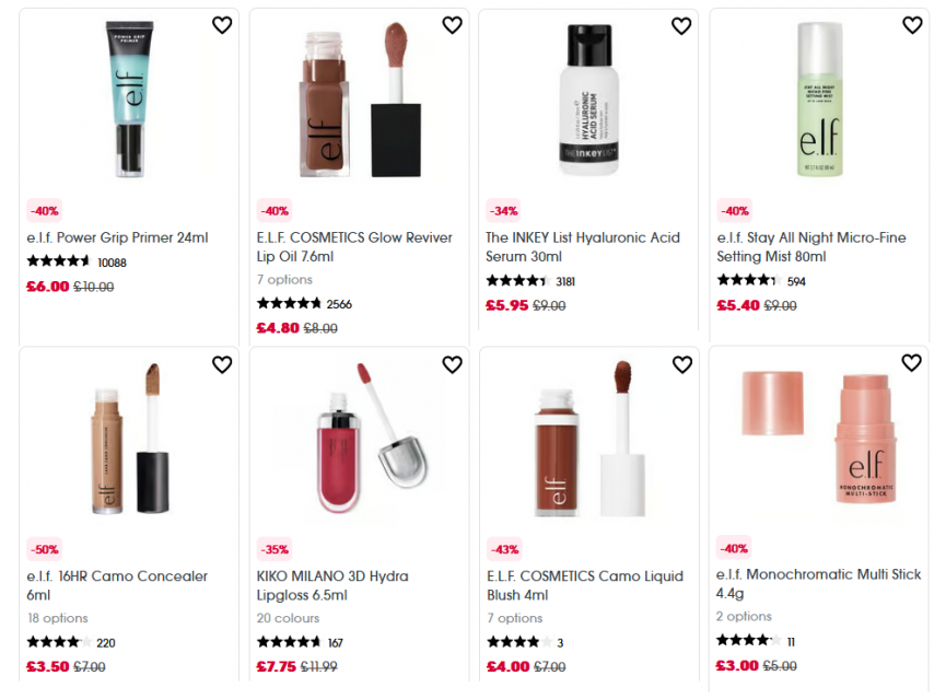 There's over 6000 items included in this sale with up to 40% off. If you are a fan of e.l.f cosmetics then you'll find some brilliant bargains here including some of their bestsellers!