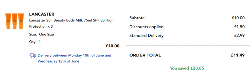 - Lancaster Sun Beauty Body Milk 75ml SPF 30 High Protection x 3* £8.50 (was £38.85)