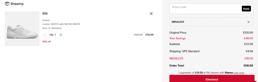 Just enter the discount code NBSALE25 at the checkout for an extra 25% off sale prices. This is only valid on some items, anything that says 'excluded from any promotions' you won't receive an extra 25% off.