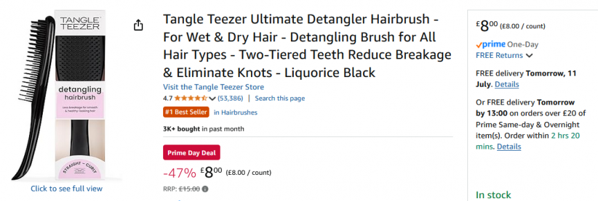 Teezer Large Ultimate Detangler Hairbrush is down to only