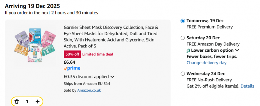 I have just ordered one of these Garnier Sheet Mask Discovery Collections to give my daughter for Christmas this year. This set is down to only £6.64 when you subscribe and save at Amazon whilst it is on a Limited Time Deal. These masks individually are normally around £3.50 each so this is a huge saving!