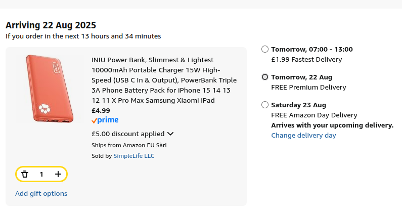 Power banks are a must if you don't want to be left without your phone if the battery runs out and this one is a great price. This INIU Power Bank is just £4.99 when you click on the voucher price of £4.99 at Amazon seller SimpleLife LLC. It's already on offer for £9.99 but that code gets you an additional 50% off so you can stack your savings.