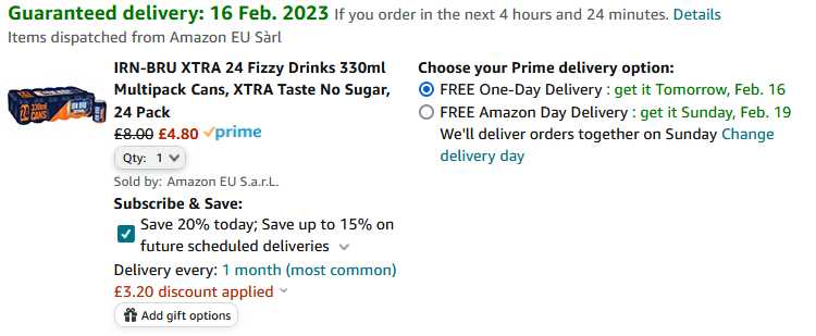 Let me tell you why I am a big fan of Irn-Bru... it's a brilliant mixer for vodka and gin, and it's an even better hangover cure in the morning, when paired with a bacon roll. Move now and you can get 24 cans of Irn-Bru Extra or Sugar Free for £4.80 when you Subscribe and Save and use the 20% off voucher at Amazon.