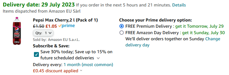 My kids go through fizzy drinks like crazy in the summer so I'm grabbing this Pepsi Max and Pepsi Max Cherry 2L while it's on offer! They're just £1.05 when you Subscribe and Save and tick the 20% off your first order voucher, with free Prime delivery available too!