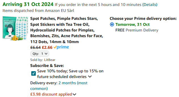I am converted to spot patches thanks to my teenager, they are a god send! I no longer need to apply toothpaste or sudocrem to dry my spots out, these patches work like a dream. I've just stocked up on this pack of spot stickers with tea tree oil for only £2.66. Just choose to subscribe and save and tick the 50% off voucher to get them for this price.