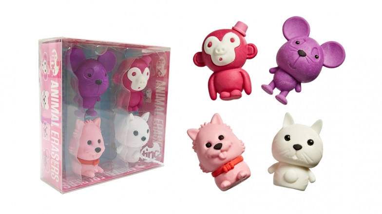 This animal eraser collection includes four cute animal characters: a monkey, a cat, a dog and a mouse erasers. It comes packaged in a gift box ready to give as a present, and would be great for collectors or for a fun Back To School stationery item for kids.