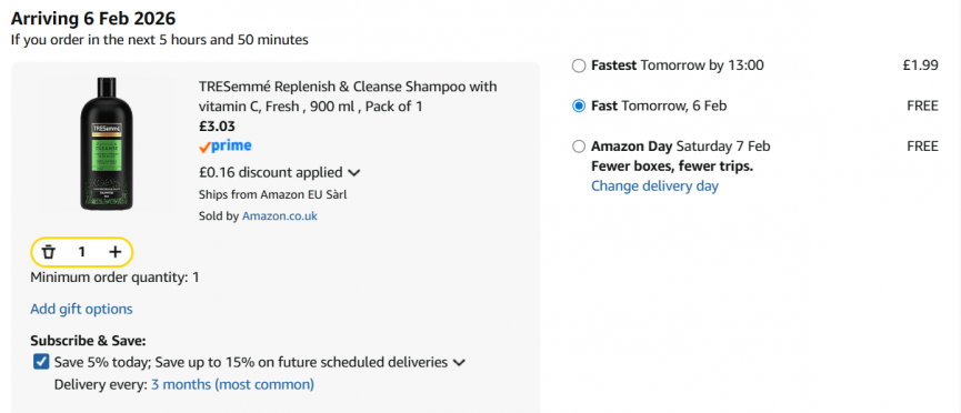 It's really easy to set up the Subscribe & Save as you just choose the frequency of your deliveries at up to 6 months apart, change the first delivery date if you wish and then order as usual. Your discount is applied automatically at the checkout. Once you've received your order you can easily amend your subscription at any time.