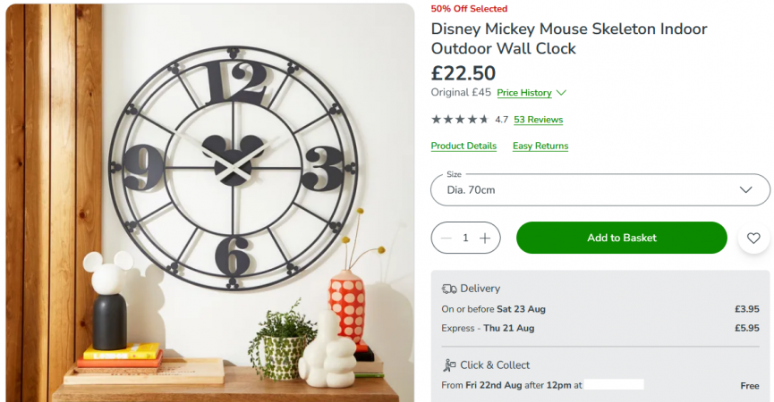 If you're a Disney fan then I'm sure you've seen some of the gorgeous homeware that Dunelm have to offer including a Bambi range, a Mickey Mouse range and much more. We've just spotted this Disney Mickey Mouse Skeleton Indoor Outdoor Wall Clock with 50% off! It's proving popular so don't hang around!