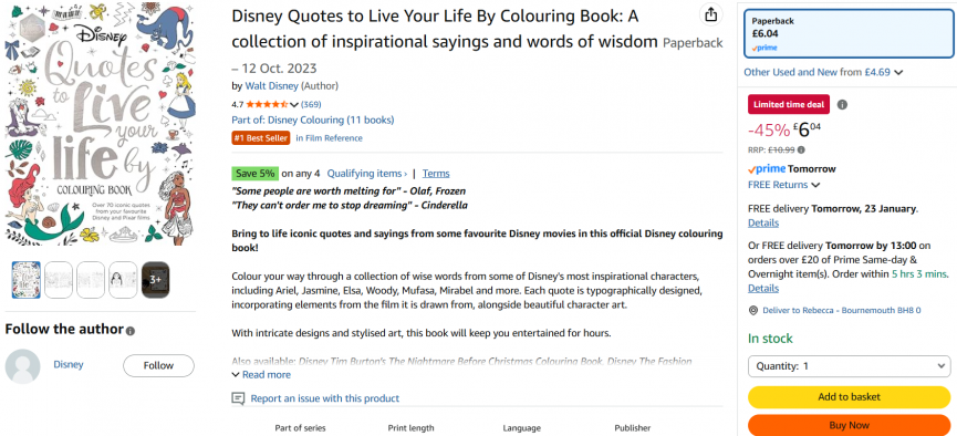 If you need a gift for a Disney fan then this is a lovely one from Amazon. They have the Disney Quotes to Live Your Life By Colouring Book on a limited time deal with 45 off. You can get it for just £6.04 when it is selling for around £10.99 elsewhere!