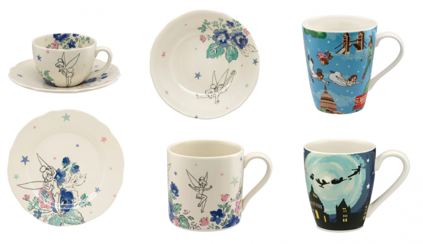 Tinkerbell Cup & Saucer £18, Tinkerbell Cereal Bowl £10, Peter Pan In London Stanley Mug £10, Tinkerbell Tea Plate £8, Tinkerbell Mug £10, Midnight Mug £10