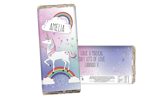 Personalised Unicorn Chocolate Bar* £4.18 delivered from eBay seller: Gift-Rush