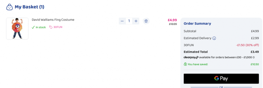 This is a nice little bargain over at Bargain Max, especially if you have a little one who likes dressing up. Stash this David Walliams Fing Costume by for World Book Day or even Halloween, it's just £4.99 down from £13.99, however enter the code 30FUN at the checkout and you get an extra 30% off making it just £3.49!