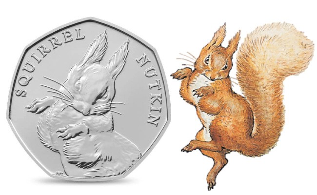 The Jemima Puddleduck and Miss Tiggy-Winkle 50p coins have been declared the rarest, with Squirrel Nutkins following closely. This is due to the amount produced by The Mint - it's significantly less than the others.