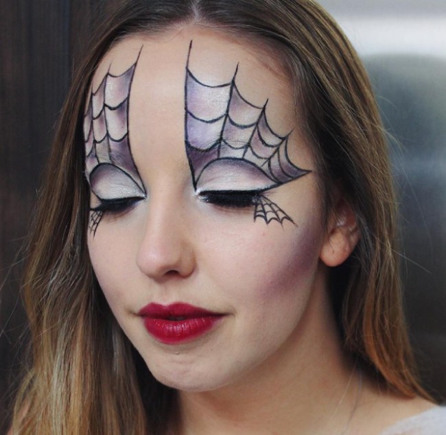 If you are not wanting to go all out scary on a Halloween night out or at work then this look is the one for you. Do your makeup as you normally would and add in some spider webs on your forehead or what looks really effective is doing it on your eyelids.