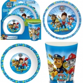 Each piece of this set has a cool Paw Patrol design on it.