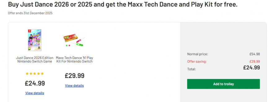 If your kids have the new Just Dance 2026 Nintendo Switch on their Christmas list then this is an offer you won't want to miss! It's down to just £24.99 from £37.99 at Argos however you also get the Maxx Tech Dance and Play Kit completely FREE! That's worth £29.99 alone!