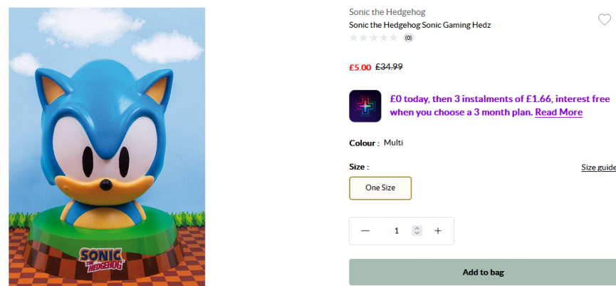 If you have a little gamer at home or even a Sonic the Hedgehog fan, then this is a bargain you won't want to miss! You can get the Sonic the Hedgehog Sonic Gaming Hed'z for only £5 at Frasers right now, it's still selling for £35.99 at Amazon so move fast to bag this bargain!