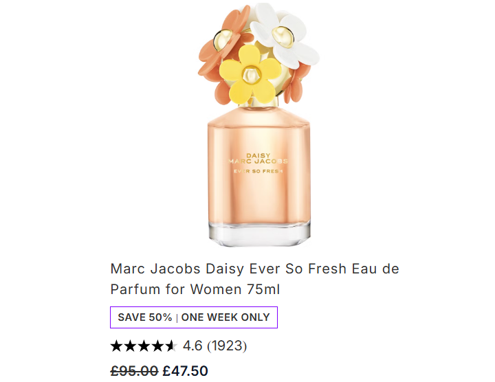 - Click here to view the Marc Jacobs Daisy Ever So Fresh Eau de Parfum for Women 75ml @ LOOKFANTASTIC*