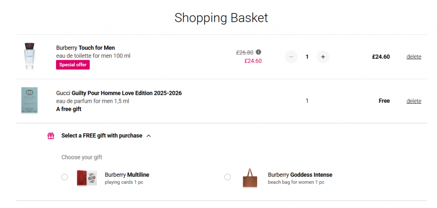 This is 100ml which makes it even more of a bargain at £24.60! You also get a free Gucci Guilty Pour Homme Love fragrance sample added to the basket automatically.