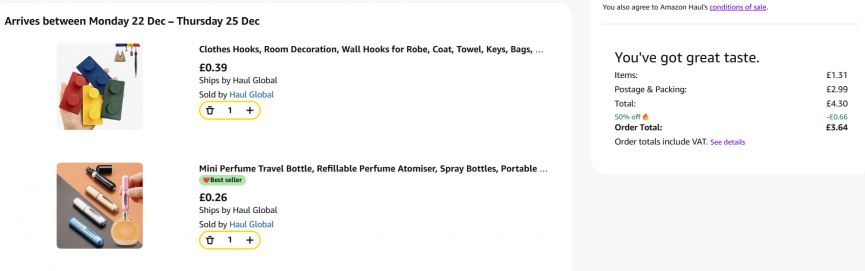 Amazon Hauls are one of my favourite ways to grab Christmas presents and stocking fillers especially. I always stock up when they have an offer on. Today only you can get 50% off everything when you buy 2 items. There's no minimum spend so you could spend as little as you like. Just make sure you use the code HAUL50 at the checkout.