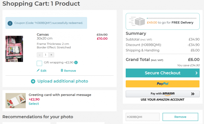 It's super easy to get a canvas for £6 at My Picture. Just choose the 30 x 20cm canvas which is normally £10 and then upload your picture.