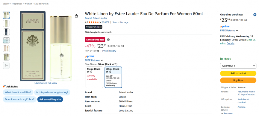 Now this is an absolute bargain if you are a fan of Estee Lauder fragrances! Amazon have the White Linen by Estee Lauder Eau De Parfum For Women in a 60ml bottle for only £23.99! This same perfume is currently on sale at Boots for £75, move fast for this bargain!