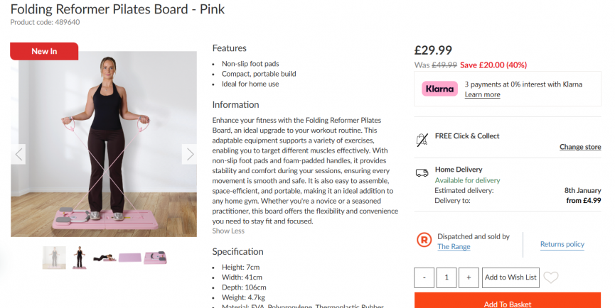 If one of your new resolutions is to get fitter and stronger then The Range have you covered with this Folding Reformer Pilates Board for just £29.99 down from £49.99! If you can't get to a Pilates class or just want to carry it on at home then this is a great option.
