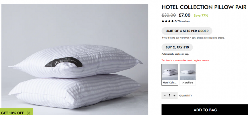 I have been on the look out for some new pillows and regretted not treating myself to some in the Christmas sales. However this Hotel Collection Pillow Pair has just caught my eye at You Know Who's. They are on offer right now, instead of & per pair you can currently get two pairs for just £10!